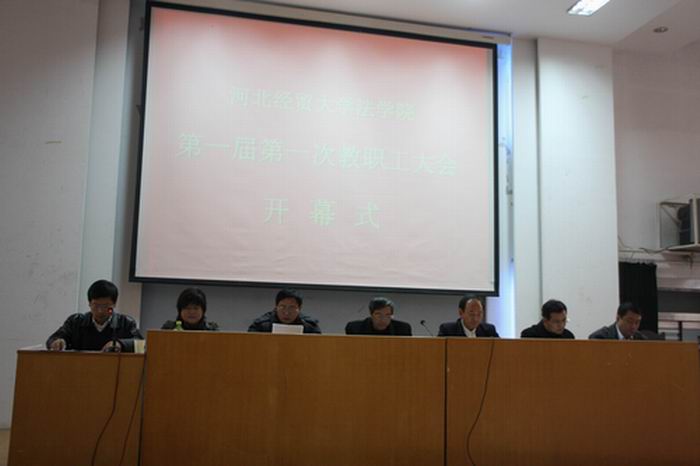 本次教职工大会由pp电子游戏官网学院胡育勇副书记主持,由党总支书记郭广辉致开幕词,校党委副书记耿彦君发表重要讲话,pp电子游戏官网院长柴振国作了《科学发展、务实创新、努力开创pp电子游戏官网工作新局面》的学院工作报告,学院分工会主席齐向晖作了《发挥桥梁作用、营造和谐氛围、形成合力促发展》的工会工作报告,副书记胡育勇作了第一届第一次教职工大会提案征集工作报告,副院长赵朴英报告了《pp电子游戏官网学科建设规划》,副院长刘春霖报告了《法学国家特色专业建设规划》。