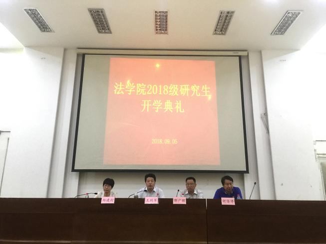9月5日,pp电子游戏官网在模拟法庭先后举行2018级研究生、本科生开学典礼。pp电子游戏官网党委书记郭广辉、院长王利军、副院长胡海涛出席,pp电子游戏官网优秀校友代表、盈科律师事务所石家庄分所执行主任赵翠莲、陆扬律师、全体辅导员和2018级全体研究生、本科生参加。典礼由学院党委副书记郑建村主持。
