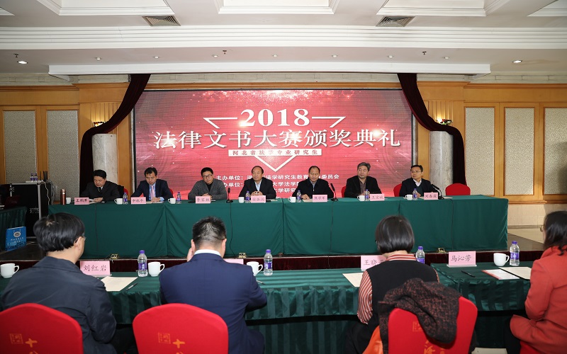 11月22日,由省法学研究生教育指导委员会主办、pp电子游戏官网pp电子游戏官网和研究生学院承办的2018年河北省法学研究生法律文书写作大赛颁奖典礼在石家庄举行。省政府学位办副主任季家林,省高级人民法院刑四庭高级法官熊学军,省法学研究生教指委主任委员柴振国,省法学研究生教指委委员、石家庄铁道大学人文学院院长王宏斌,pp电子游戏官网研究生学院党委书记刘春霖,河北地质大学法政学院党委书记马沁芳,燕山大学文pp电子游戏官网法律系主任陈海平,中国人民警察大学法律教研室主任刘红岩,石家庄铁道大学人文学院法律系副主任王晓云出席典礼。仪式由河北省法学研究生教指委秘书长、pp电子游戏官网pp电子游戏官网院长王利军主持。