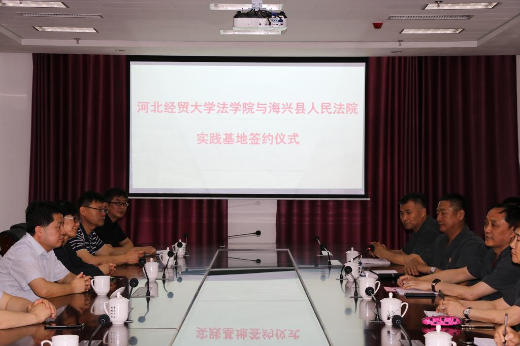 5月30日上午,pp电子游戏官网与海兴县人民法院共建教育实践基地揭牌仪式在海兴法院隆重举行。pp电子游戏官网院长王利军、沧州市中级人民法院党组成员、政治处主任段辉军,中共海兴县委副书记刘明亮,中共海兴县委常委、纪委书记、监委主任王亚平,海兴县检察院检察长刘金生,海兴县公安局局长卢万顺,海兴法院党组书记、院长黄坤生以及海兴法院领导班子成员和全体干警参加了仪式。