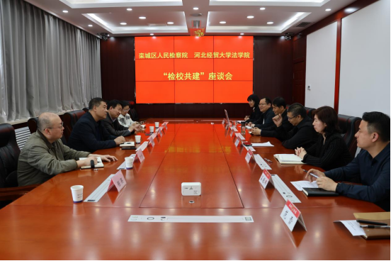 2023年3月31日下午,pp电子游戏官网党委书记王继伟、副院长胡海涛、李大庆和教师代表张亮、孙晓丹赴石家庄市栾城区人民检察院就“校检共建”开展专题座谈。栾城区人民检察院党组书记、检察长王力志、党组成员、副检察长裴丽艳、付新永、吕振邦,检委会专职委员赵智泉参加活动。
