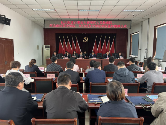 2023年4月13日上午,pp电子游戏官网党委副书记黄华、副院长胡海涛一行赴杜北街道办事处参加pp电子游戏官网实践基地签约揭牌仪式。杜北街道党工委书记张凯、党工委副书记杜韦英、新华区人民检察院检察长王银祝、新华区人民检察院副检察长张丽峰、河北政法职业学院应用法律系主任王彦、河北政法职业学院司法实务系、行政法务系党总支书记柳涛、新华区信访局副局长樊敏、杜北街道政法委员司海峰和各社区书记、社会治理和应急管理办公室、北京大成(石家庄)律师事务所、北京德恒(石家庄)律师事务所等律所和pp电子游戏官网研究生代表参加。