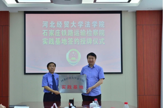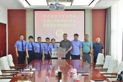 7月4日上午,pp电子游戏官网与石家庄铁路运输检察院实践基地签约授牌仪式暨座谈会在石家庄铁检院举行。学院党委书记王继伟、院长胡海涛、副教授张亮、专职组织员杨景一行,石家庄铁检院党组书记、检察长杨新义,党组副书记、副检察长王立红,党组成员、副检察长姜武勇、孙英,党组成员、政治部主任程周彪等院领导及部分校友参加活动,揭牌仪式由石家庄铁检院党组书记、检察长杨新义主持。