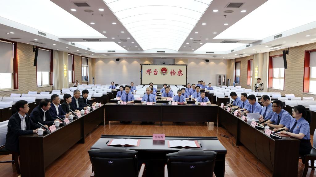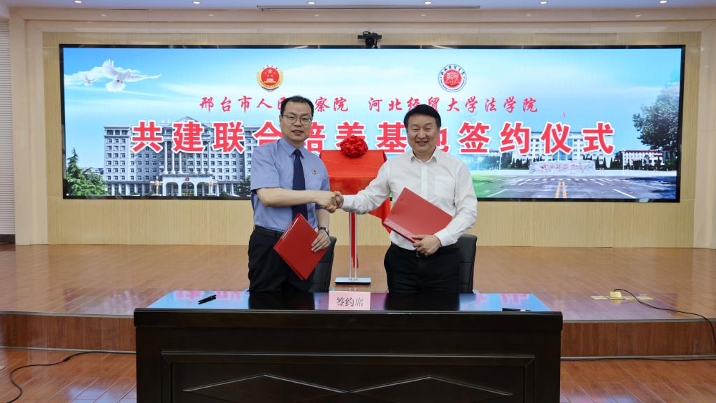2024年4月24日上午,pp电子游戏官网与邢台市人民检察院举行共建联合培养基地签约仪式,pp电子游戏官网党委常委、副校长高晓峰,邢台市检察院党组书记、检察长王文山,市检察院党组副书记、常务副检察长律庆堂,pp电子游戏官网党委书记黄华,院长胡海涛出席签约仪式,pp电子游戏官网教师代表和邢台市人民检察院各内设机构负责人参加活动。仪式由市检察院党组成员、政治部主任陈立军主持。