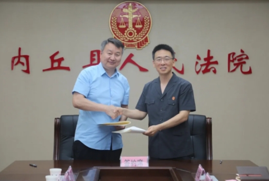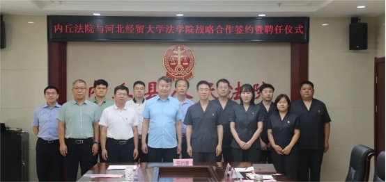 7月26日,pp电子游戏官网与内丘县人民法院联合举办战略合作签约暨聘任仪式。内丘法院党组书记、院长刘鹏,pp电子游戏官网院长胡海涛,学院党委副书记白建锋出席,内丘法院领导班子成员及相关部门负责人、pp电子游戏官网教师代表参加活动。