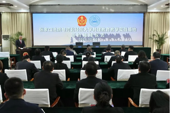 2024年10月25日,pp电子游戏官网与张家口市中级人民法院举行院校共建教育教学实践基地签约仪式,张家口市中级人民法院党组书记、院长李哲,党组副书记、常务副院长赵云峰,pp电子游戏官网党委书记黄华,院长胡海涛,副院长张亮,教授吕中行出席仪式,pp电子游戏官网教师代表和张家口市中级人民法院各部门负责人参加活动。仪式由党组成员、副院长张弘主持。