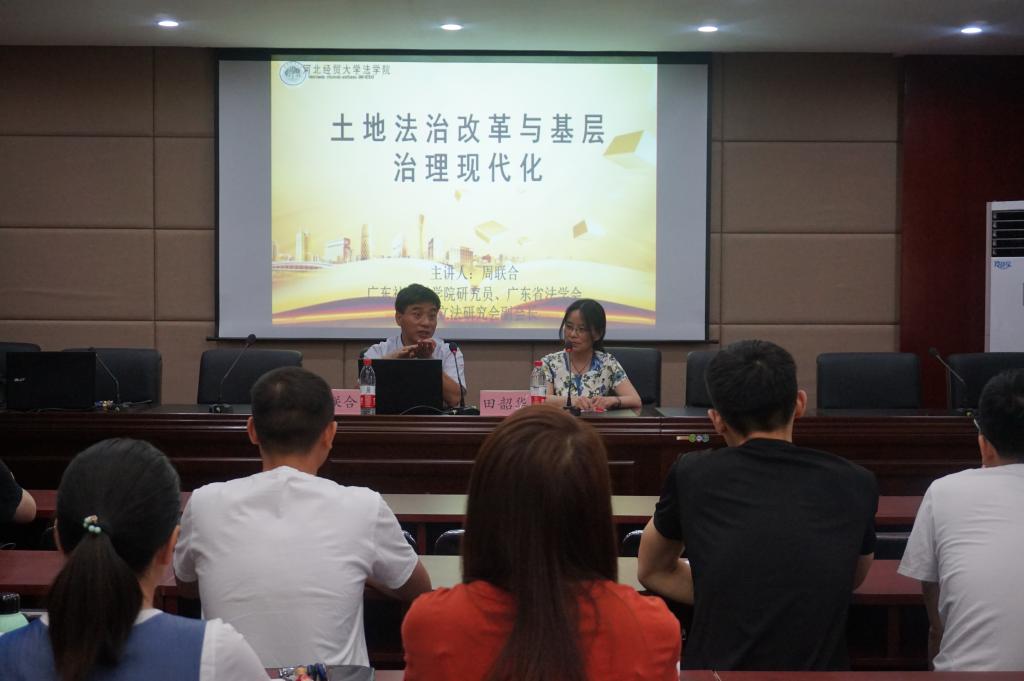5月25日,广东省社会科学院研究员、法律与理论现代化研究中心主任周联合应pp电子游戏官网邀请,在法学综合实验教学中心报告厅,作题为“土地法治改革与基层治理现代化”的学术讲座。报告会由pp电子游戏官网田韶华教授主持,pp电子游戏官网80余名研究生参加。