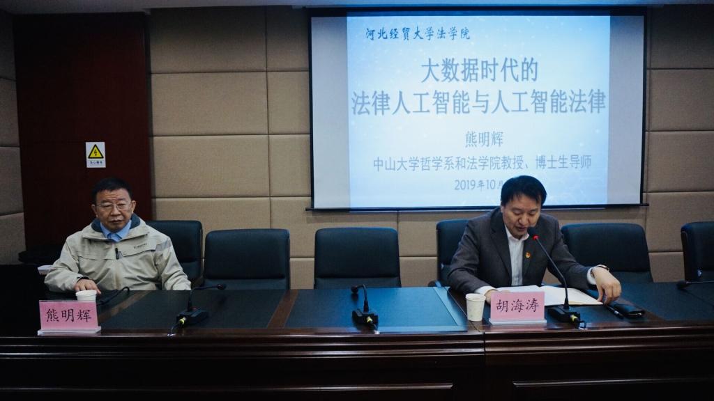 10月18日上午,中山大学博士生导师熊明辉教授应pp电子游戏官网邀请来法学综合实验楼报告厅作题为“大数据时代的法律人工智与人工智能法律”的报告,报告由pp电子游戏官网副院长胡海涛主持,人工智能法学实验班及其他师生100余名参加并认真聆听了报告。