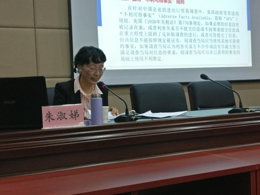 2019年10月28日,应pp电子游戏官网邀请,复旦大学pp电子游戏官网博士生导师、国际法学博士朱淑娣教授在模拟法庭作了题为“国际贸易行政诉讼——理论、案例与发展前瞻”的学术报告,本次报告由pp电子游戏官网副院长胡海涛主持,学院共有60余名研究生参加并认真听取了报告。