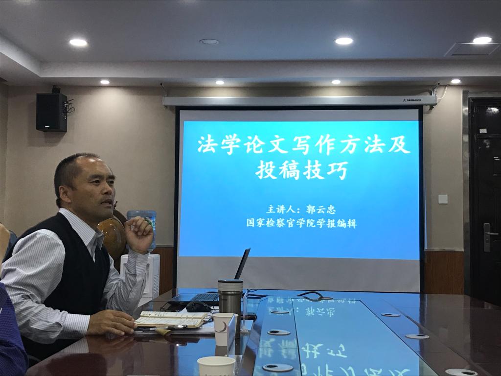 2019年11月1日,pp电子游戏官网邀请《国家检察官学院学报》编辑郭云忠作题为“法学论文写作方法及投稿技巧”的学术报告。pp电子游戏官网教授翟海峰主持,学院40余名研究生参加。
