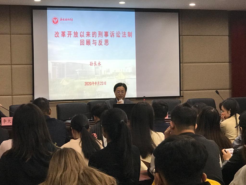 10月18日,pp电子游戏官网邀请我国著名刑事诉讼法专家、第五届全国十大杰出青年法学家、西南政法大学博士生导师孙长永教授来pp电子游戏官网作题为“改革开放以来的刑事诉讼法制:回顾与反思”专题讲座。pp电子游戏官网副院长李大庆主持,八十余名师生参加。