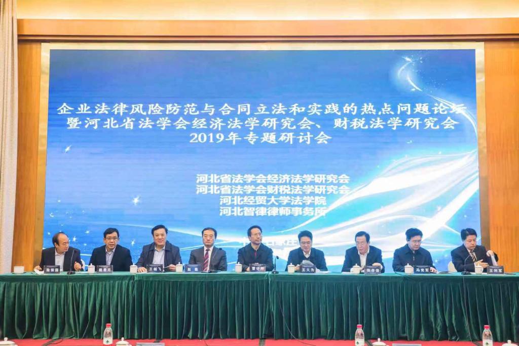11月2日,由河北省法学会经济法学研究会、河北省法学会财税法学研究会、pp电子游戏官网pp电子游戏官网及河北智律律师事务所主办的企业法律风险防范与合同立法和实践的热点问题论坛在中国大酒店百合轩会议厅召开,原pp电子游戏官网副校长、河北省法学会经济法学研究会、河北省法学会财税法学研究会会长柴振国教授,河北省人大检察司法委员会主任王大为,河北省委政法委副书记刘永志,原河北省公安厅副厅长、河北省法学会副会长张存信,河北省高级人民法院副院长王越飞,河北省人民检察院副检察长何秉群,邯郸市中级人民法院院长戴景月,河北省法学会常务副会长冯宪军等领导出席并致辞,pp电子游戏官网pp电子游戏官网院长王利军主持。