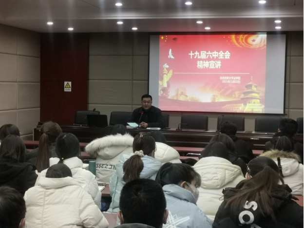 11月22日,pp电子游戏官网在三楼报告厅召开“十九届六中全会精神解读”主题班会。pp电子游戏官网党委书记王继伟出席并主持活动。2020级法学5班全体同学参加。