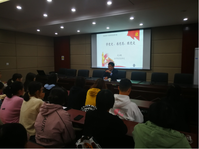 首先,武玉鹏带领同学们重温党的渊源——从出席中国共产党“一大”13名代表讲起,介绍了13名“一大”代表的不同经历和选择的不同人生之路,毛泽东、董必武从南湖到开国大典,成为新中国的缔造者;何叔衡、邓恩铭、陈潭秋血洒疆场志未酬,为中国共产党的伟大事业献出了自己宝贵的生命;陈公博、周佛海、张国焘背信弃义叛党投敌,成为背党弃义的卖国贼,遭到历史的唾弃。他用13个人不同的人生之路告诫同学们,要想实现个人理想,必须坚定自己的理想信念!