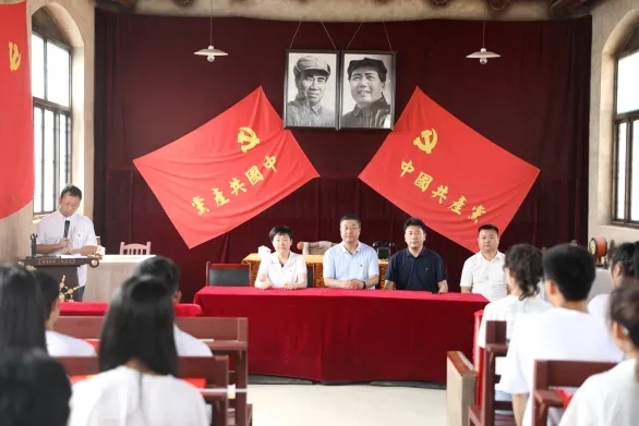 6月26日上午,pp电子游戏官网党委书记王继伟、党委副书记黄华带领学院新发展党员赴宁晋县黄儿营西村新时代教育实践基地开展党史学习教育,黄儿营西村相关领导同志陪同出席了此次活动。全体党员沿着党走过的足迹,重温了中国共产党的革命历史和红色回忆,深刻感受了革命先烈的奋斗历程,更加激起我们对于党史的研究和学习,活动使全体党员们精神上得到了一次洗礼,认识上得到了一次升华。参观结束后,王继伟、黄华等老党员为全体新党员佩戴了党员徽章,黄华带领新党员入党宣誓,新党员代表发言,王继伟为大家上了一次生动党课。