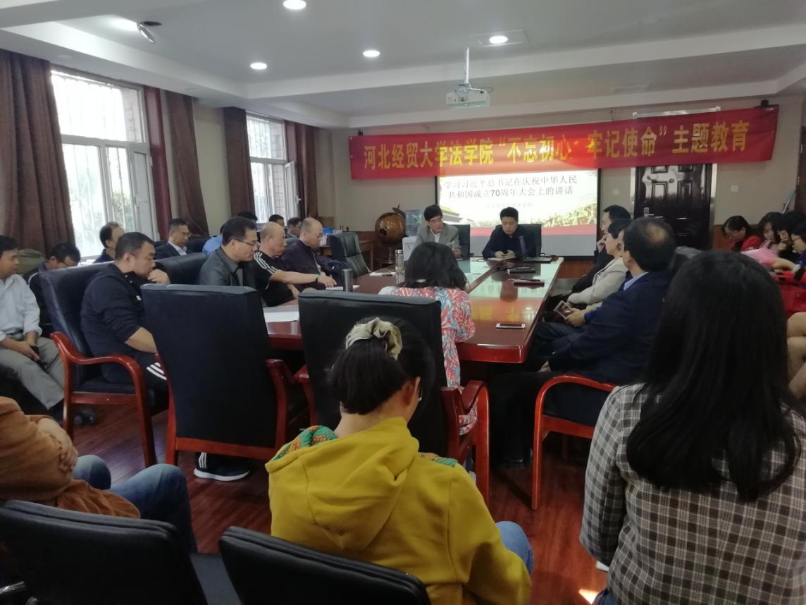 10月7日下午,pp电子游戏官网全体教职工在第二办公楼会议室集中学习和研讨习近平总书记在庆祝中华人民共和国成立70周年大会上的重要讲话。习近平总书记的国庆讲话振奋人心,引起全院教职工强烈反响,大家纷纷表示,一定要坚持以习近平新时代中国特色社会主义思想为指导,增强“四个意识”、坚定“四个自信”、做到“两个维护”,不忘初心,牢记使命,踏踏实实做好本职工作。