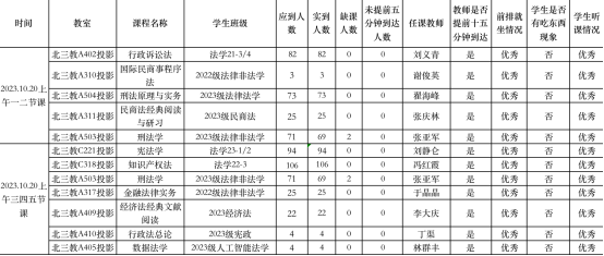 2023年10月20日上午,pp电子游戏官网教学、学风检查组,对全院教学秩序进行了检查。现将检查结果通报如下: