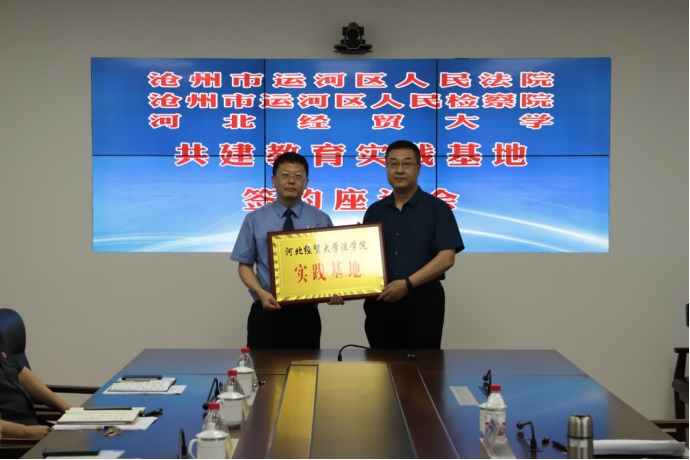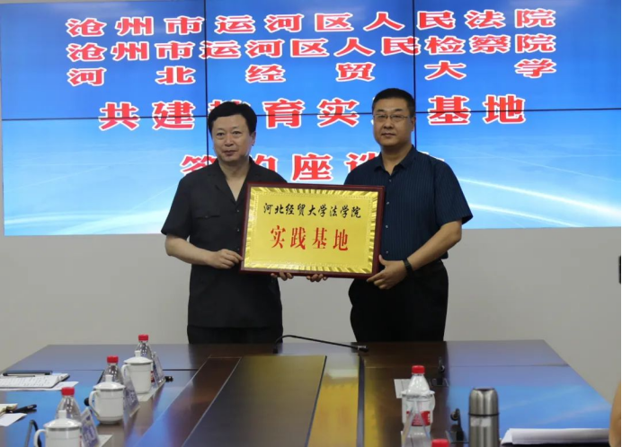 6月18日上午,pp电子游戏官网与沧州市运河区人民检察院、运河区人民法院共建教育实践基地签约授牌仪式在运河区检察院隆重举行。运河区委常委、政法委书记樊清泉,运河区人民检察院党组书记、检察长王金瓯,运河区人民法院党组书记、院长李振勇,pp电子游戏官网pp电子游戏官网党委书记王继伟、院长王利军和与会各单位相关部门负责人出席了仪式。
