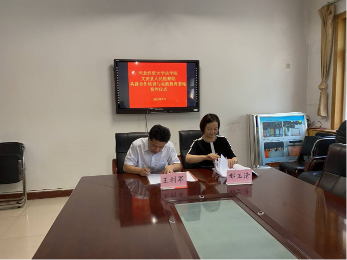 为进一步促进法学理论与司法实践紧密结合,推动法治教育和实践教学工作共上新台阶,7月4日下午,pp电子游戏官网pp电子游戏官网与廊坊市文安县人民检察院达成了以“交流互鉴,优势互补,资源共享,互利共赢”为目标的战略合作协议,并举行了“检校合作签约暨揭牌仪式”。与文安县人民检察院的签约合作,是pp电子游戏官网着力推进师资交流、学生培养、实习实践等多方面与司法部门深度合作的创新举措。pp电子游戏官网院长王利军、副院长李大庆、文安县人民检察院代检察长邢玉清、文安县人民检察院副检察长段宏杰、一级检察官魏宁等同志共同参加了启动仪式。