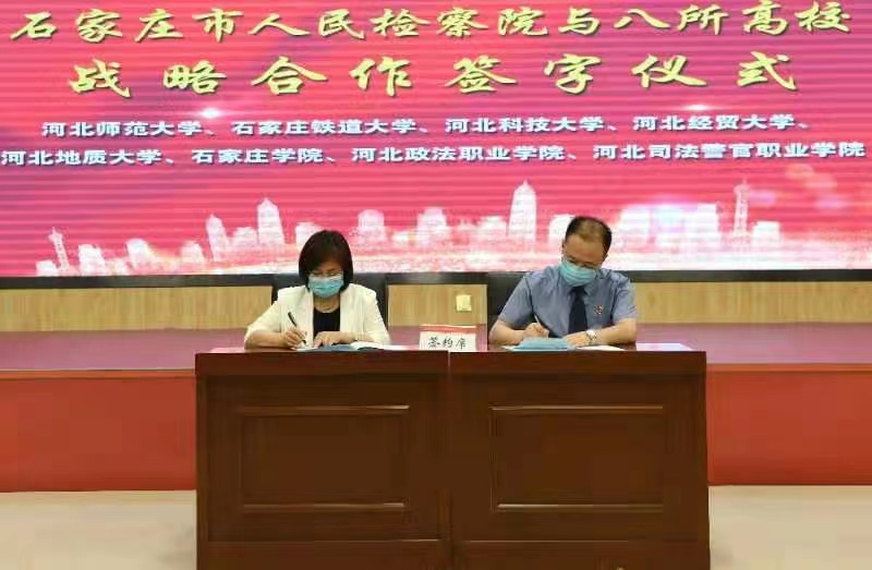 6月17日下午,pp电子游戏官网等八所在石院校与石家庄市人民检察院举行战略合作协议签字仪式。pp电子游戏官网党委常委、副校长程瑞芳出席,并代表学校与石家庄市人民检察院签署战略合作协议。市检察院党组书记、检察长邢伟向pp电子游戏官网pp电子游戏官网8名教师颁发“石家庄市人民检察院专家咨询委员会委员”聘书。市检察院党组成员,市内五区检察院检察长和政治部主任,以及市检察院相关内设机构负责人出席了签约仪式。