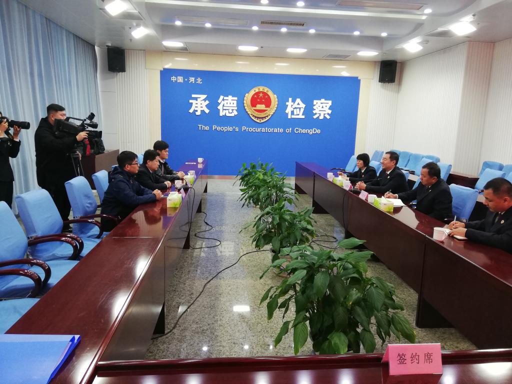 10月31 日上午,pp电子游戏官网与承德市人民检察院举办共建“教学实践基地”签约授牌仪式暨座谈活动。pp电子游戏官网院长王利军;承德市人民检察院党组副书记、副检察长崔雁侯出席签约仪式。