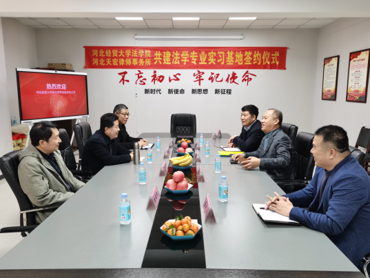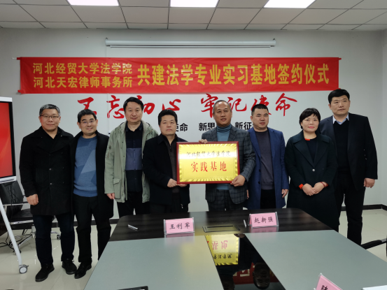 3月1日下午,pp电子游戏官网与河北天宏律师事务所举办共建“实践基地”签约授牌仪式暨座谈活动,pp电子游戏官网院长王利军、副院长胡海涛,河北天宏律师事务所主任赵新强、执行主任、合伙人等出席。