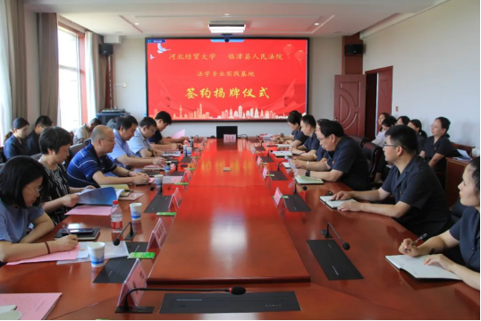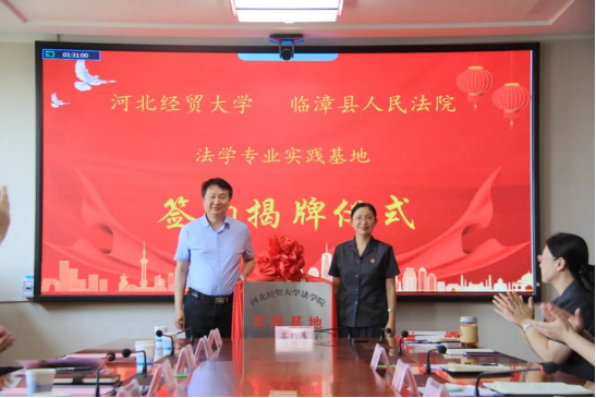 2023年7月17日下午,pp电子游戏官网与临漳县人民法院共同举行“pp电子游戏官网实践基地”签约揭牌仪式。临漳县人民法院党组书记、院长姜霜、河北工程大学文pp电子游戏官网院长张凡、pp电子游戏官网院长胡海涛、副院长李大庆出席,高校教师代表和法院相关部门干警代表参加座谈。活动由临漳法院党组副书记、副院长杨寅海主持。