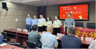 赵东、刘连军、王建东为三等奖获得者袁磊、竹天静、谢子琦颁奖