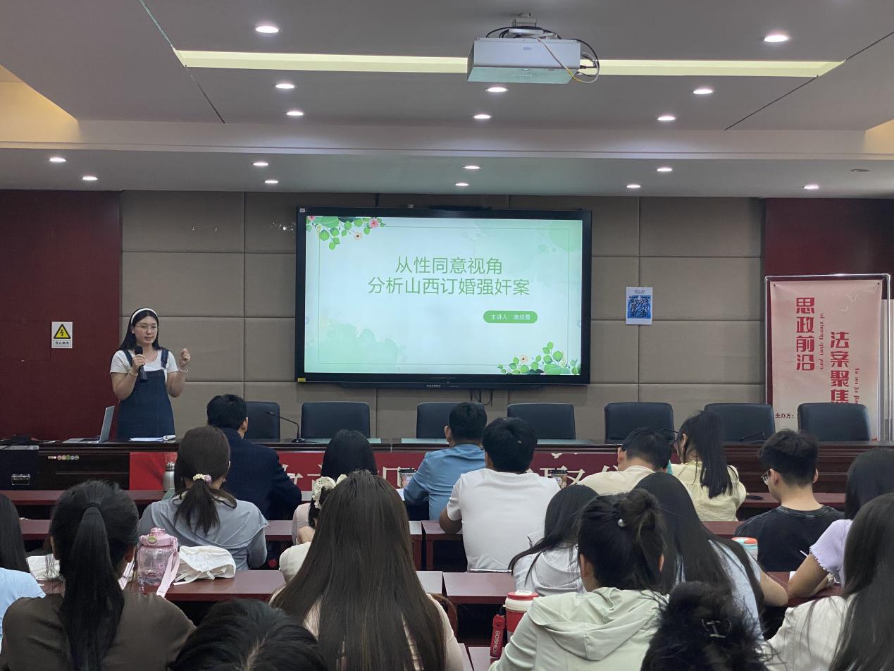 最后,高佳雪同学从性同意的视角分析了近期热议的山西订婚强奸案。案件中,男方支付了10万元彩礼并与女方签署了订婚协议,随后男方在订婚次日强迫女方发生性关系,女方明确拒绝并试图自救。最终,男方被认定构成强奸罪,一审被判处有期徒刑三年,二审维持原判。尽管双方已订婚,但这并不意味着性行为存在默示的同意。当前仍有很多人持有“婚约=性契约”的错误观念,认为支付彩礼后女方有义务满足男方的性需求。然而,根据《中华人民共和国刑法》第二百三十六条规定,强奸罪保护的是妇女的性自主权,婚恋关系并不意味着性同意,性行为的合法性必须以“自愿”为前提。而在本案中女方在事前明确表示反对婚前性行为,事中有明显反抗行为,事后反应强烈,足以认定男方违背女方意志。即使是夫妻关系,婚内性行为也需双方自愿,否则可能构成婚内强奸。因此,订婚或支付彩礼不能被视为性行为的默示同意。 最后,高佳雪同学呼吁社会增强法治意识,树立正确的婚恋观,用法治思维破除“订婚代表性同意”“彩礼捆绑性权利”等错误观念,共建法治社会,希望每个人都能尊重他人、尊重自己。