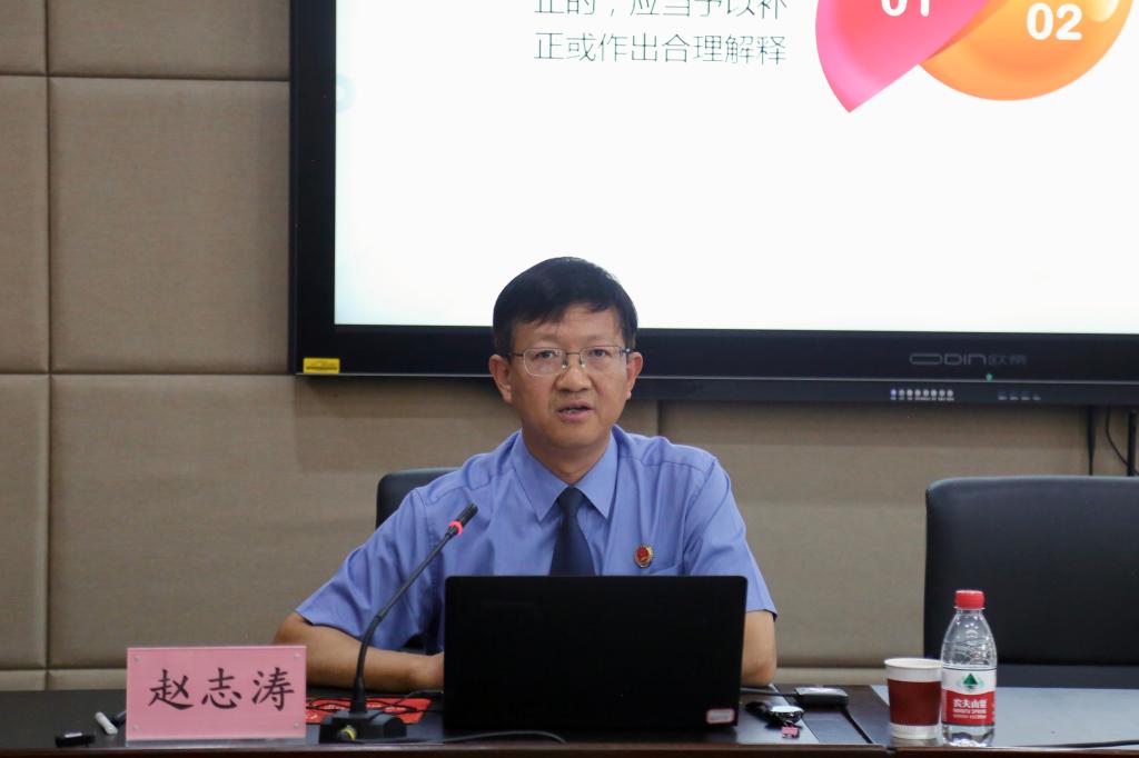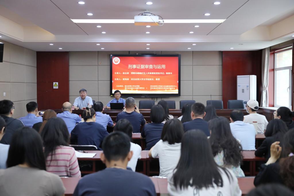 5月26日上午,pp电子游戏官网邀请邯郸市峰峰矿区人民检察院党组书记、检察长,三级高级检察官赵志涛,以“刑事证据审查与运用”为题作学术报告。河北省人民检察院政治部干部教育培训处处长郎大强等领导出席,pp电子游戏官网院长胡海涛主持,60余名师生到场聆听。
