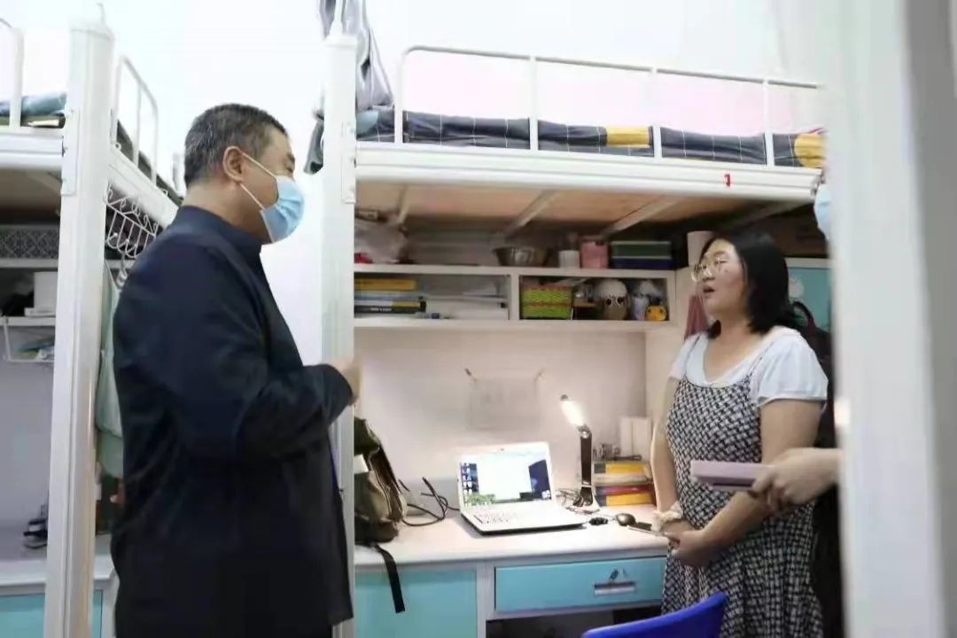走访过程中,王继伟询问并解答了同学们线上学习和疫情生活中遇到的问题和疑惑。通过走访,他对各个宿舍的卫生情况和同学们展现出来的良好风貌给予了充分肯定。同时,要求大家要配合学院做好“日报告”、晚点名、核酸检测等工作。坚持“非必要不出校”原则,特殊情况需履行严格审批手续。希望同学们守纪律,共同筑牢校园疫情防线。