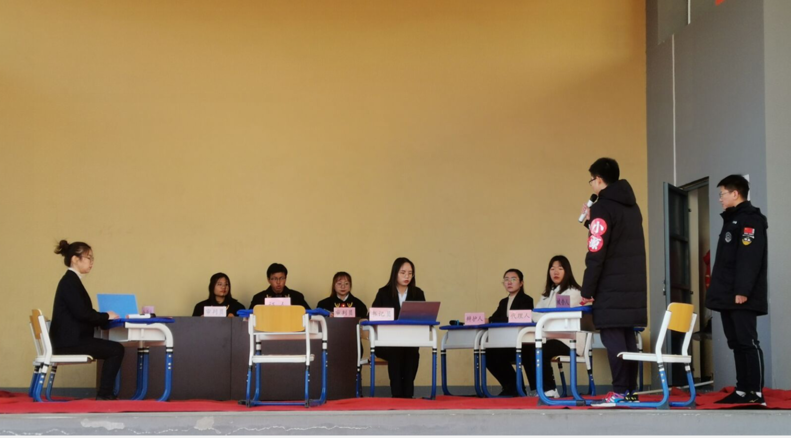 首先,南石家庄小学领导对全体志愿者的到来表示热烈的欢迎。活动中,志愿者向同学们表演情景剧《向校园欺凌说‘‘不’’》,生动再现校园欺凌场景,让同学们明白校园欺凌的危害。接着,针对情景剧演绎的事件举办了模拟开庭,展现法律的严肃与公正,让同学们了解法律对未成年人和校园安全的保护。然后,研究生志愿者以亲切的话语,深入浅出地介绍了校园欺凌如何防治。然后,为增强同学们的参与感,进行有奖竞答活动,不同与传统课堂的说教方式,引起了极大反响;在活动结束之际,AI法学实验班学生演唱《海绵宝宝》,让同学们乐在其中,学法、娱乐两不误。