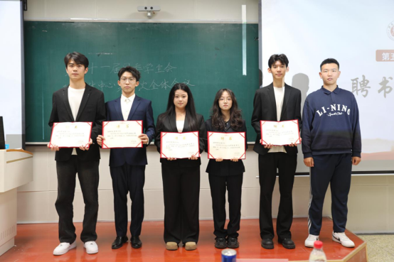 在全场的热烈掌声中,王艺帆老师为第三十一届主席团成员及各部门部长颁发聘书。这一仪式不仅是对大家过往工作的肯定,更承载着对新任期工作的期许。