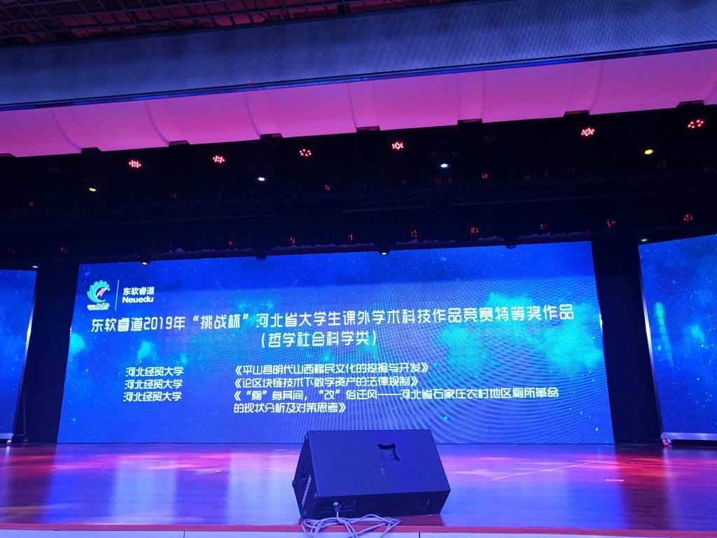 5月24日-26日,2019年“挑战杯”河北省大学生课外学术科技作品竞赛终审决赛在东北大学秦皇岛分校举行。pp电子游戏官网2017级民商法学孙岩等同学负责的项目《论区块链技术下数字资产的法律规制》获省级特等奖(哲学社会科学类);柴振国教授获省级“优秀指导教师”称号。