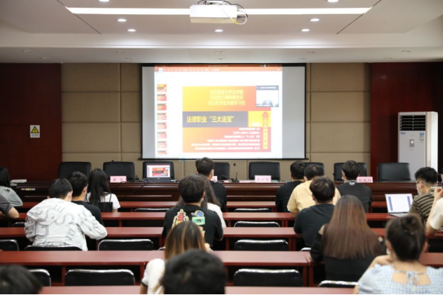 王利军、冯路钧、郑建村分别发言,对获奖同学表示祝贺并宣读了钧日创新奖学金名单、钧日法考奖学金名单和钧日竞赛奖学金名单。随后对在2021年第三届河北省法律文书写作大赛、2021年国家统一法律职业资格考试、2021年第十届中国WTO模拟法庭竞赛中获奖的同学进行了表彰,参会领导为获奖同学颁发证书并合影留念。2021级民商法学专业研究生马珊珊作为获奖代表发言。王继伟在总结发言中向多年来支持学院发展的钧日律所表示感谢,对全体获奖同学表示祝贺,鼓励获奖同学继续努力,争取获得更好成绩,希望全院同学以获奖同学为榜样,不断提高专业水平和实践能力,他希望院所双方能够进一步深化合作,为培养高素质法律人才携手努力。仪式结束后,冯路钧作了题为“法律职业‘三大法宝’”的讲座。他在讲座中分享了法律职业的三大法宝:博学、笃行、合一,他强调每个人都有不同的成长背景,每个人都要善于在法律精神里找到属于自己法律职业的三大法宝。