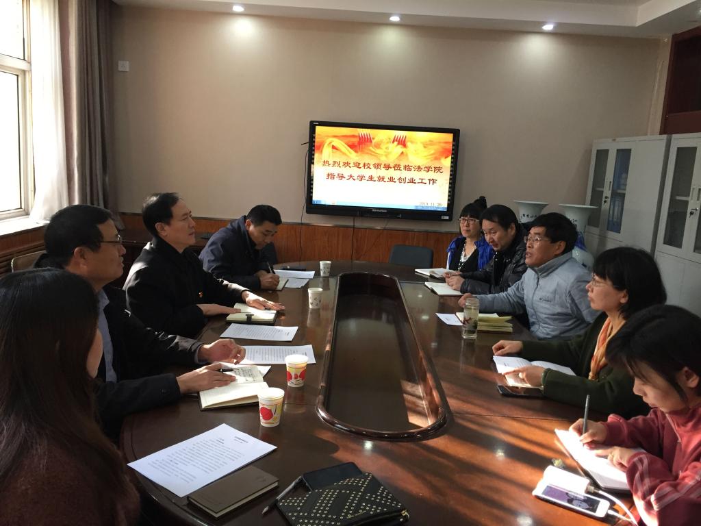 2019年11月26日下午,校党委常委、副书记刘建平在就业指导服务中心主任江秀军,副主任白玉祥的陪同下,来到pp电子游戏官网就大学生就业创业工作进行专题调研。旨在深入了解pp电子游戏官网促进毕业生就业创业工作的做法和工作进展,并围绕当前影响工作推进的重要瓶颈进行深入探讨交流,共同谋划问题的解决办法。pp电子游戏官网班子成员及辅导员参加了座谈会。