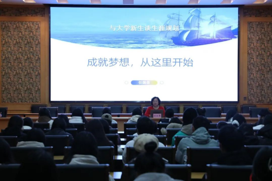 2023年11月13日下午,pp电子游戏官网邀请河北省智慧智库专家、河北省教育厅、人社厅高校生涯教育及毕业生就业指导专家、河北师范大学任国荣教授在会议中心报告厅作了主题为“成就梦想,从这里开始——与大学新生谈生涯规划”专题讲座。讲座由pp电子游戏官网学生工作办公室主任陈运涛主持,学院2023级全体本科生参加。