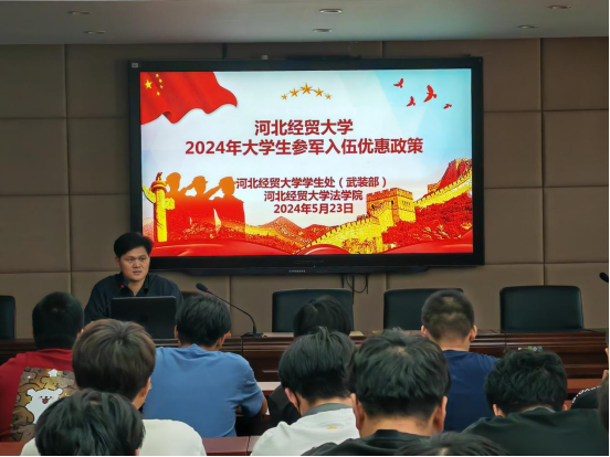 5月23日,pp电子游戏官网于三楼学术报告厅举办2024年大学生参军入伍政策宣讲暨优秀退役复学学生报告会。pp电子游戏官网学生工作办公室主任陈运涛、退役复学学生代表陈英及七十余名本科生参与本次活动。